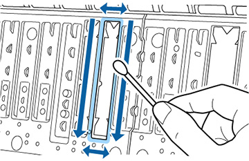tinta, partículas de papel ou fiapos nessas superfícies pode