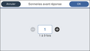 2. Sélectionnez Param. > Paramètres généraux > Param. fax > Param de base > Sonneries avant réponse. Un écran comme celui-ci s'affiche :