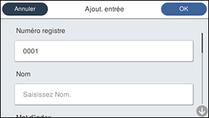 utilisez le clavier affiché pour saisir le nom du contact (jusqu'à