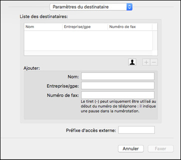 envoyer une télécopie à partir d'un logiciel d'impression Mac à