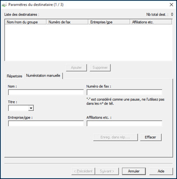 le nom et le numéro de télécopieur du destinataire ou sélectionnez
