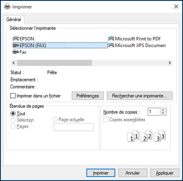 la commande d'impression. Une fenêtre comme celle-ci