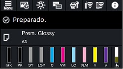 Pantalla del estado de impresión (muestra los niveles de tinta y la