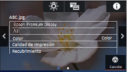 Pantalla de los ajustes de impresión (muestra los ajustes de