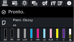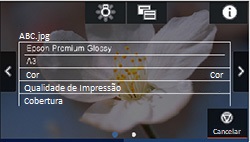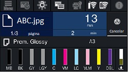 Tela de estado da impressão (exibe os níveis da tinta e uma barra