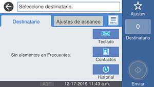 • Seleccione Historial para elegir una dirección de correo electrónico de su historial de escaneo reciente.