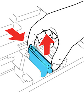 - Squeeze the tab on the cartridge and lift the cartridge