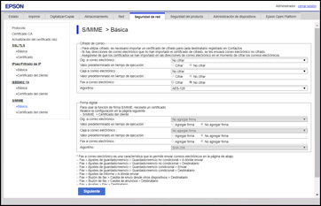 Puede configurar el cifrado de correo electrónico y el archivo adjunto de firma digital a los correos electrónicos, según sea necesario.