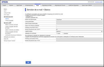 Você pode configurar um servidor de e-mail usando o Web Config.