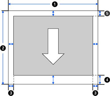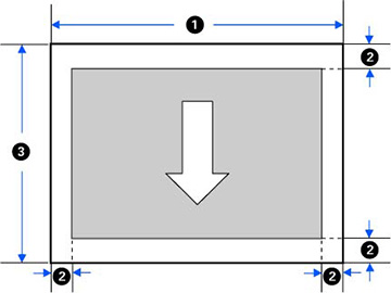 | 3 | Margen izquierdo/derecho: mínimo de 0,12 pulg. (3 mm) (0 pulg. [0 mm] con la impresión sin márgenes) |