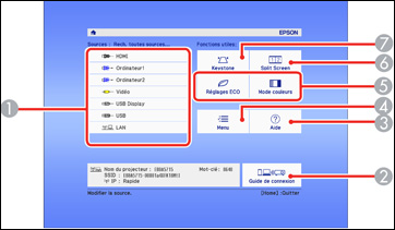 1 Permet de sélectionner la source vidéo que vous souhaitez projeter.