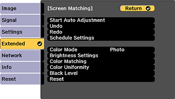 recommend that you reset the following settings on the Image menu before beginning manual screen
