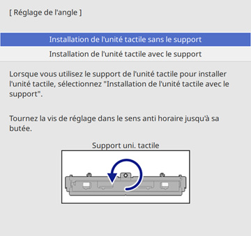 et allumé l'unité tactile avant d'effectuer le réglage de l'angle.