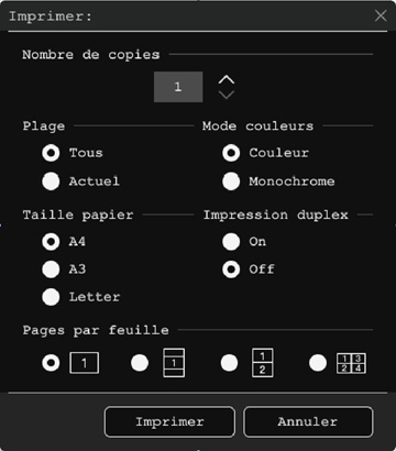 d'impression suivantes :