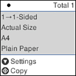 To change the print settings, press the left or right arrow button and select the necessary settings. When you are finished, press the
