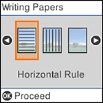 To rotate the layout for your note paper, press the down arrow button.