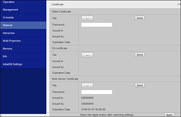 register the digital certificates on the projector for wireless LAN