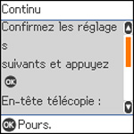 Si l'option vous permettant de désactiver la détection de la tonalité est activée, appuyez sur le bouton OK. Cependant, si vous désactivez la détection de tonalité, le premier chiffre du numéro de télécopieur pourrait ne pas être entré correctement, et la télécopie pourrait être envoyée au mauvais numéro.