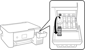 retire la botella de tinta y cierre la tapa del tanque de tinta
