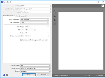 de numérisation. Vous pouvez prévisualiser l'image numérisée et