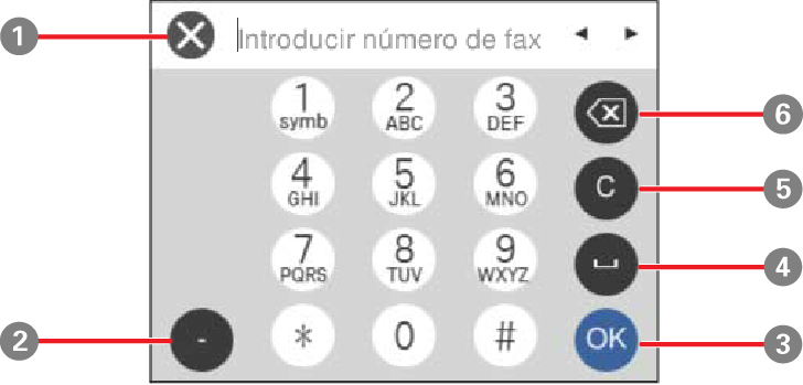 | 1 | Cancela la entrada del número y cierra el teclado. |