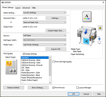 select a different output size. If you select Same as Paper Size, the Document Size and Output