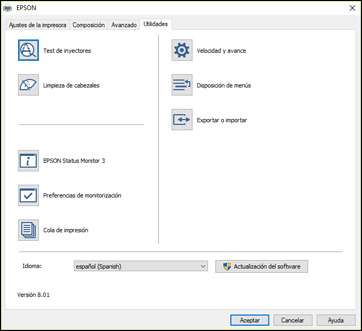 ventana del software de la impresora.