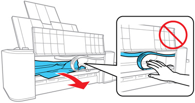 frontal y retire el papel obstruido y los trozos dañados.
