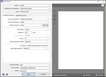 de numérisation. Vous pouvez prévisualiser l'image numérisée et