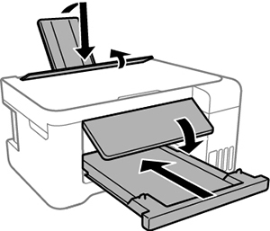 10. Close the paper support, feeder guard, and output tray. Then lower the control panel by gently pushing the panel down.