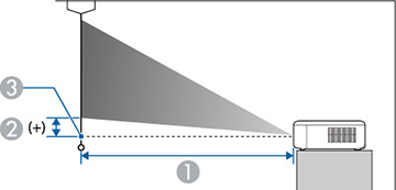 | Taille de l'écran ou de l'image | Distance de projection (1)