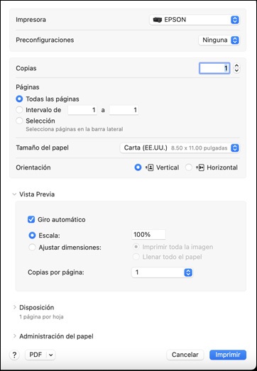 de impresión puede ser diferente, dependiendo de la versión de Mac