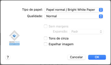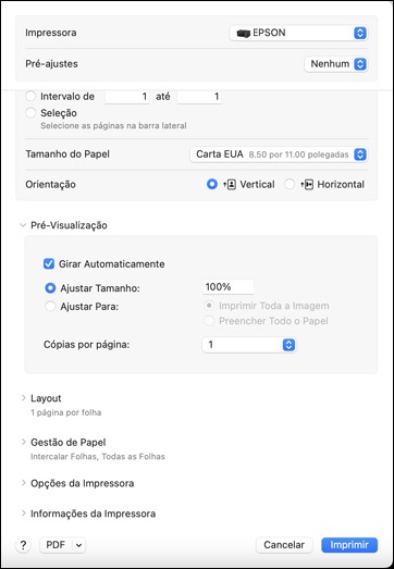 janela de impressão pode ser diferente, dependendo da versão do Mac