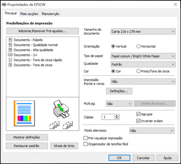 ser que também tenha que selecionar Propriedades ou Preferências para ver as suas configurações de