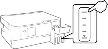 the tank. Do not squeeze the bottle. Ink flows into the tank and
