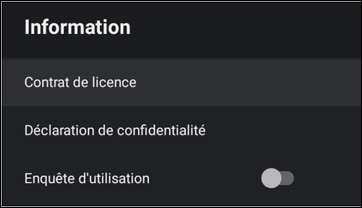 Affiche le contrat de licence. |