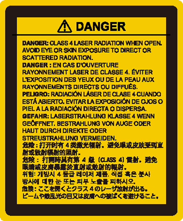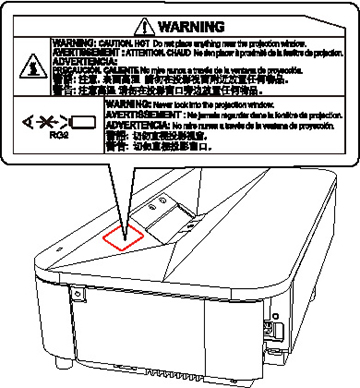 Des étiquettes d'alerte laser se trouvent sur le projecteur.