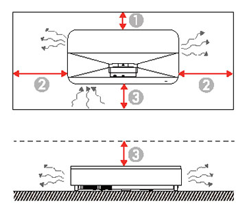 Si vous projetez du plafond, du mur ou de l'arrière, veillez à