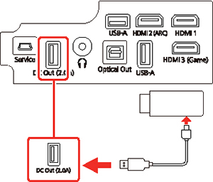 Out (2.0A) du projecteur.