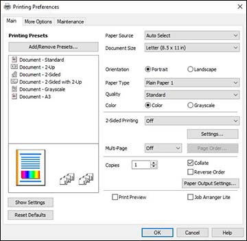 Click and select Settings > Bluetooth & devices > Printers & scanners. Select EPSON Universal Print Driver and select