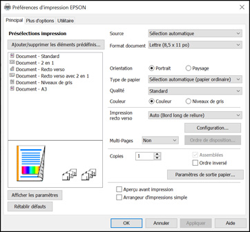 d'impression que vous utilisez dans tous les programmes Windows,