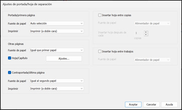 Aparece la ventana Ajustes de portada/Hoja de
