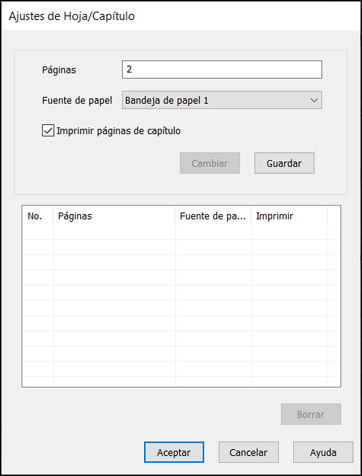 Aparece la ventana Ajustes de Hoja/Capítulo.