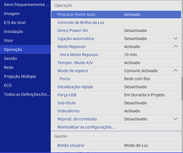 Selecione o menu Operação e aperte Enter.