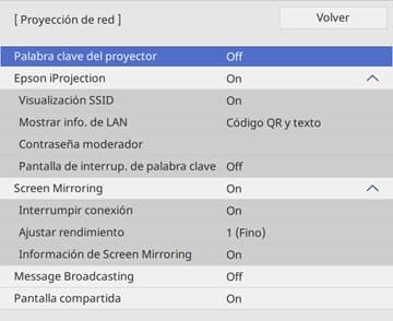 Configure el ajuste Epson iProjection en On.