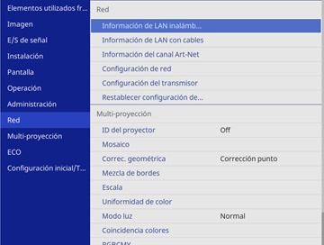 seleccionar cómo el proyector muestra la información de la red.