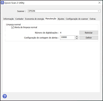 Reinicie o número de digitalizações usando o Epson Scan2 Utility depois de fazer uma limpeza de rotina.