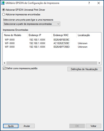 instalando um produto, certifique-se de que a opção Adicionar EPSON Universal Print Driver está