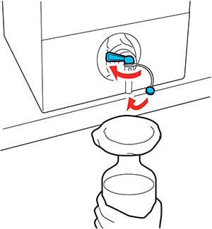 palanca para verter un litro del líquido de pretratamiento en la