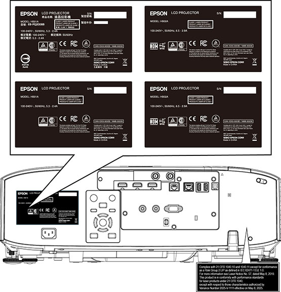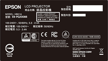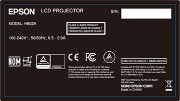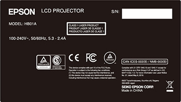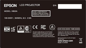 L'étiquette de classification fixée sur le projecteur contient l'information d'identification et de certification pour le projecteur.
